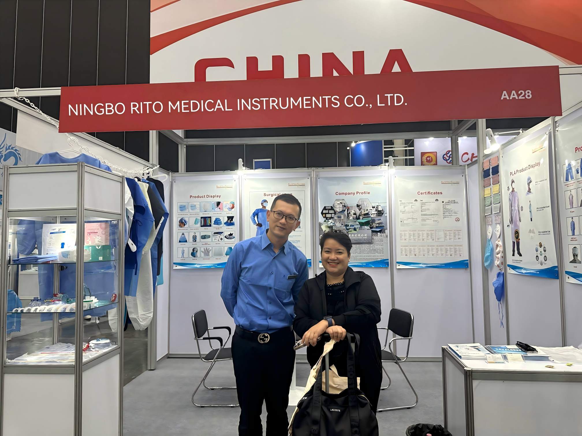 Tällä kertaa Ningbo Ritomed tuo tärkeimmät edulliset kudotut tuotteet ja hengitystuotteet, mukaan lukien kertakäyttöinen kirurginen naamio, eristyspuku, kirurginen puku, happimaski, sumutusnaamio ...